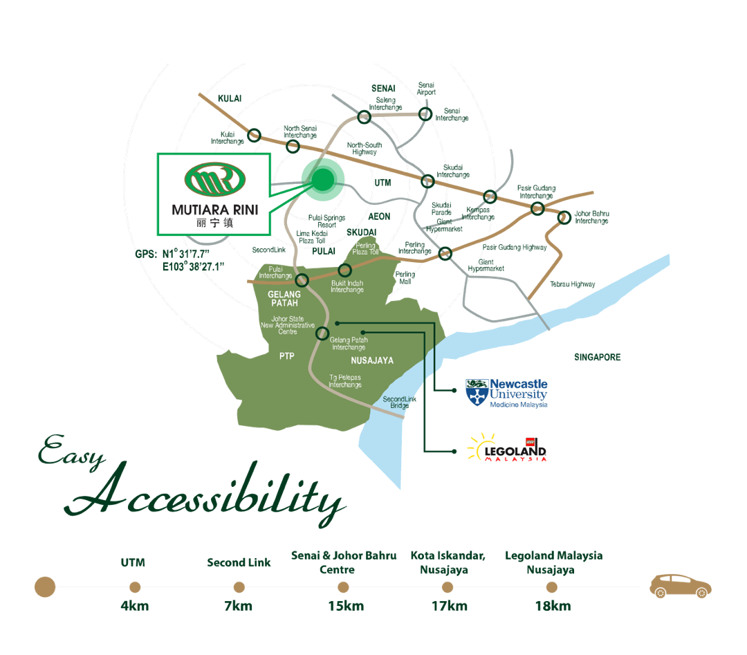 Major highways and the nearby Skudai Highway ensure smooth connections to Johor Bahru and beyond.